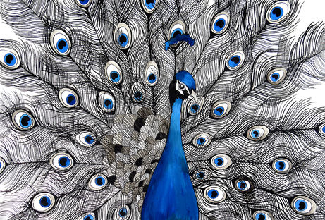 My ink brush drawings begin with a rough lead pencil sketch on watercolour paper. I progressively add in linework, patterning and finer details, as well as diluted ink shadowing, using Indian ink. I often like to add a touch of vibrant colour to my artworks, with acrylic paint or pigment ink. Sometimes I use a fine liner pen, for additional detailing.